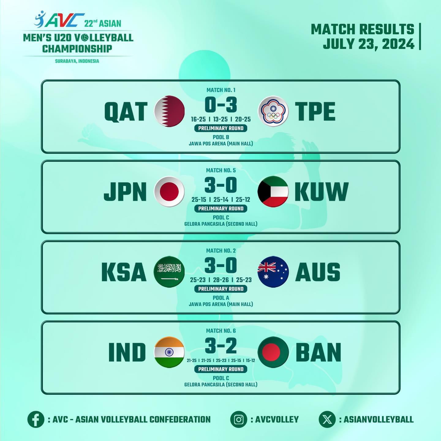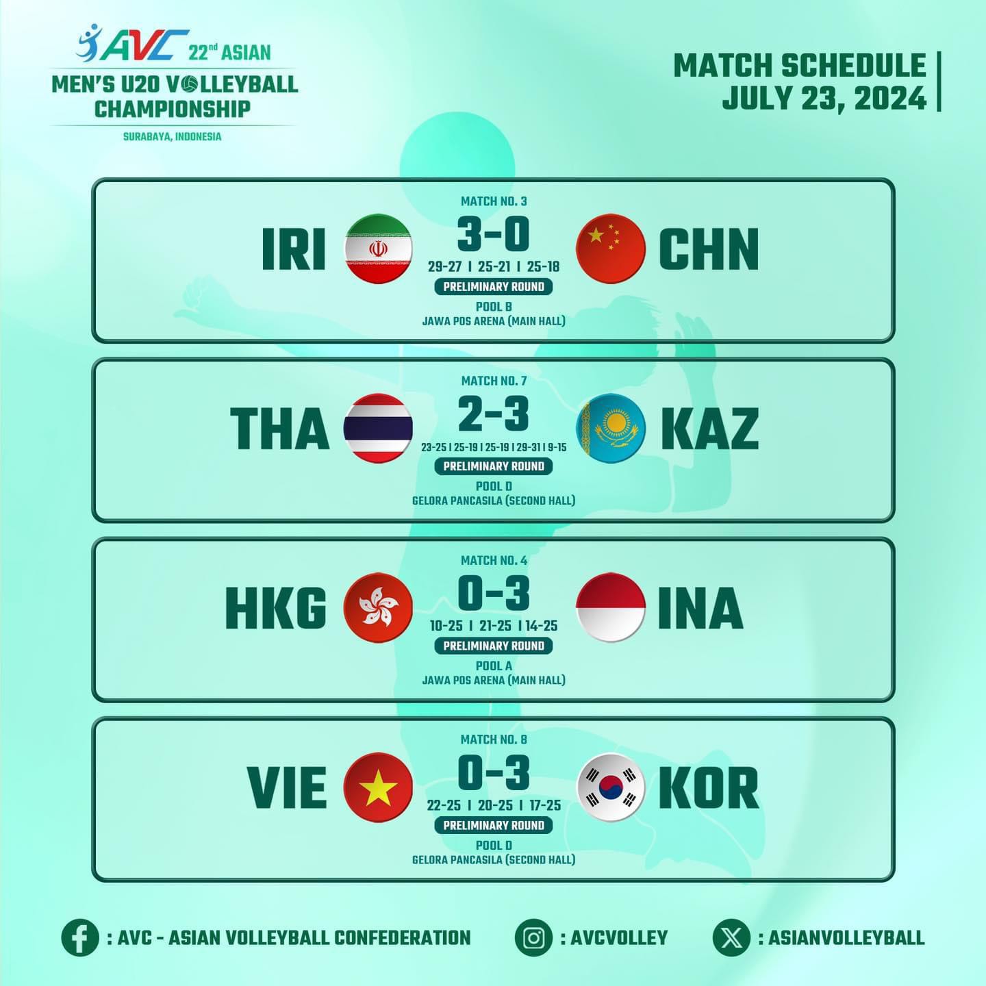สรุปผล วอลเลย์ยู 20 ชิงแชมป์เอเชีย วันแรก