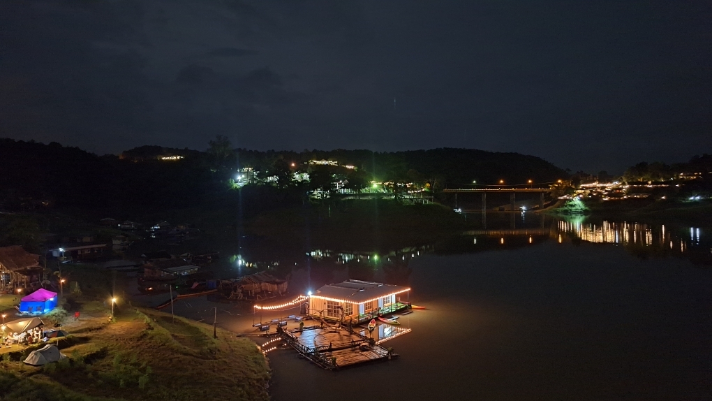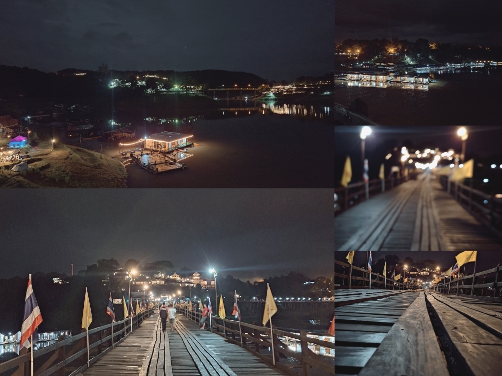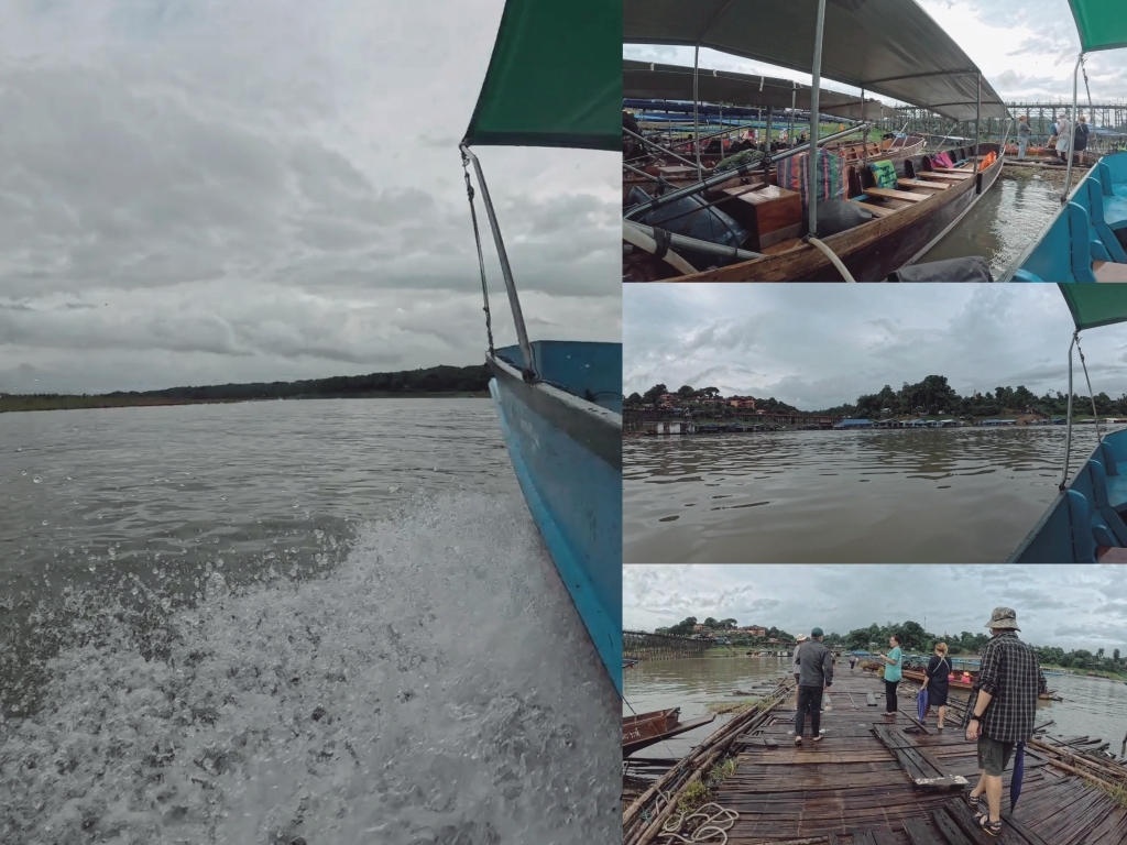 เราจองที่พักไว้ฝั่งมอญ ใกล้ๆสะพาน หลังจากเก็บของที่พักแล้ว ก็ออกเดินเล่นหาข้าวกิน และล่องเรือชมวัดกลางน้ำ