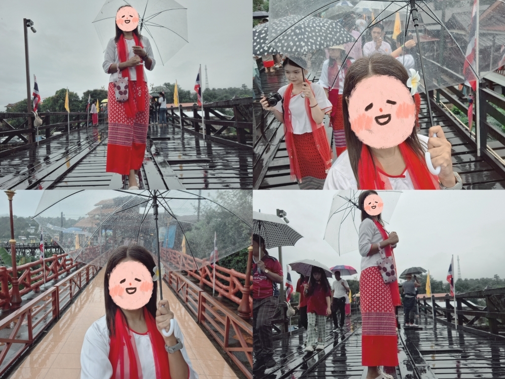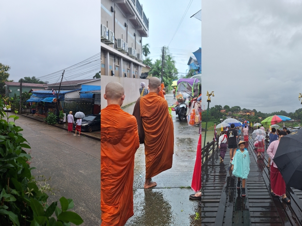 ฝนตกแต่เช้า รอใส่บาตรหน้าที่พัก แต่ถ้าใครไม่รอจะเดินไปใส่ที่สะพานก็ได้ ใส่เสร็จไปชิมโจ๊กนั่งยอง ร้านจะอยู่ฝั่งมอญ คนเยอะมาก
