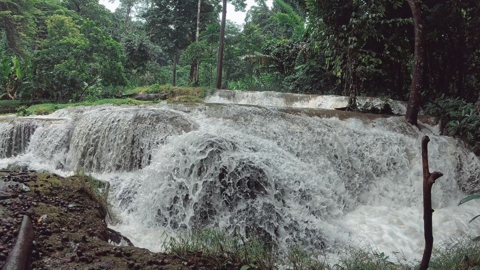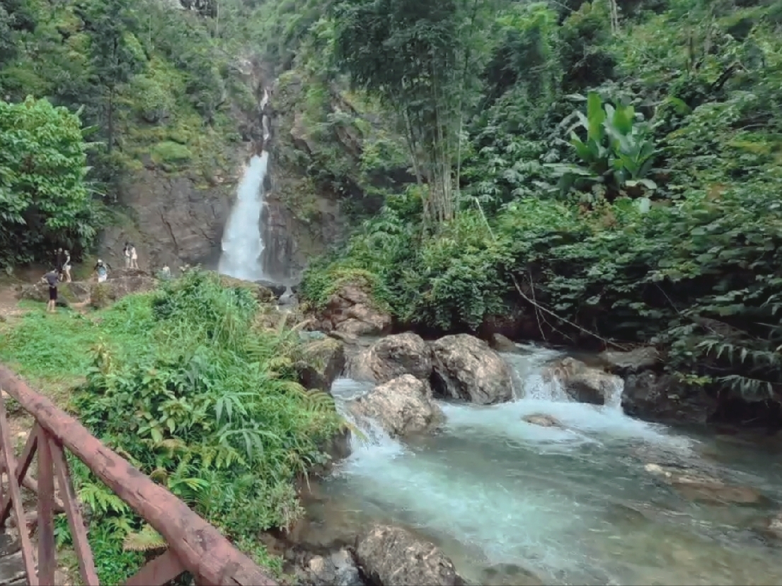 ก่อนถึงหมู่บ้าน เราแวะน้ำตกจ๊อกกระดิ่นก่อน ทางลงน้ำตกทางแคบ ชันนิดหน่อย บางช่วงต้องเดินรถทางเดียว สลับกันขึ้นลง จะมีเจ้าหน้าที่คอยเช็ครถให้ ว่าไปได้หรือต้องหยุดรอก่อน