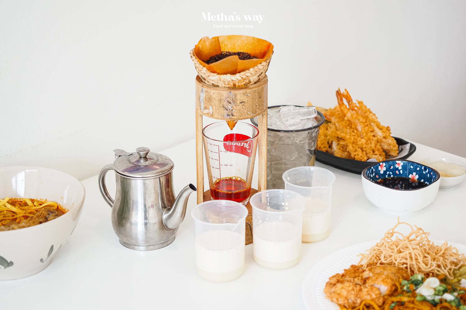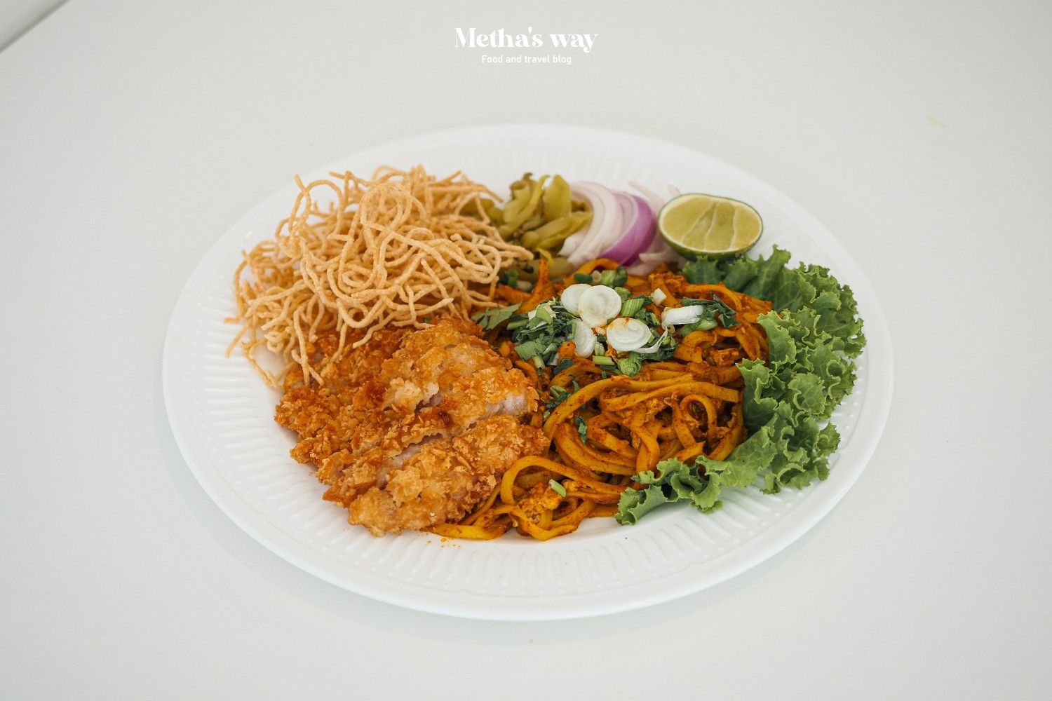 แน่นอนว่าเมนูที่ขาดไม่ได้เลยคือข้าวซอยของร้าน เซ็ตนี้จะมีทั้ง ‘ข้าวซอยไก่ และข้าวซอยคั่วแห้งทงคัตสึหมู’