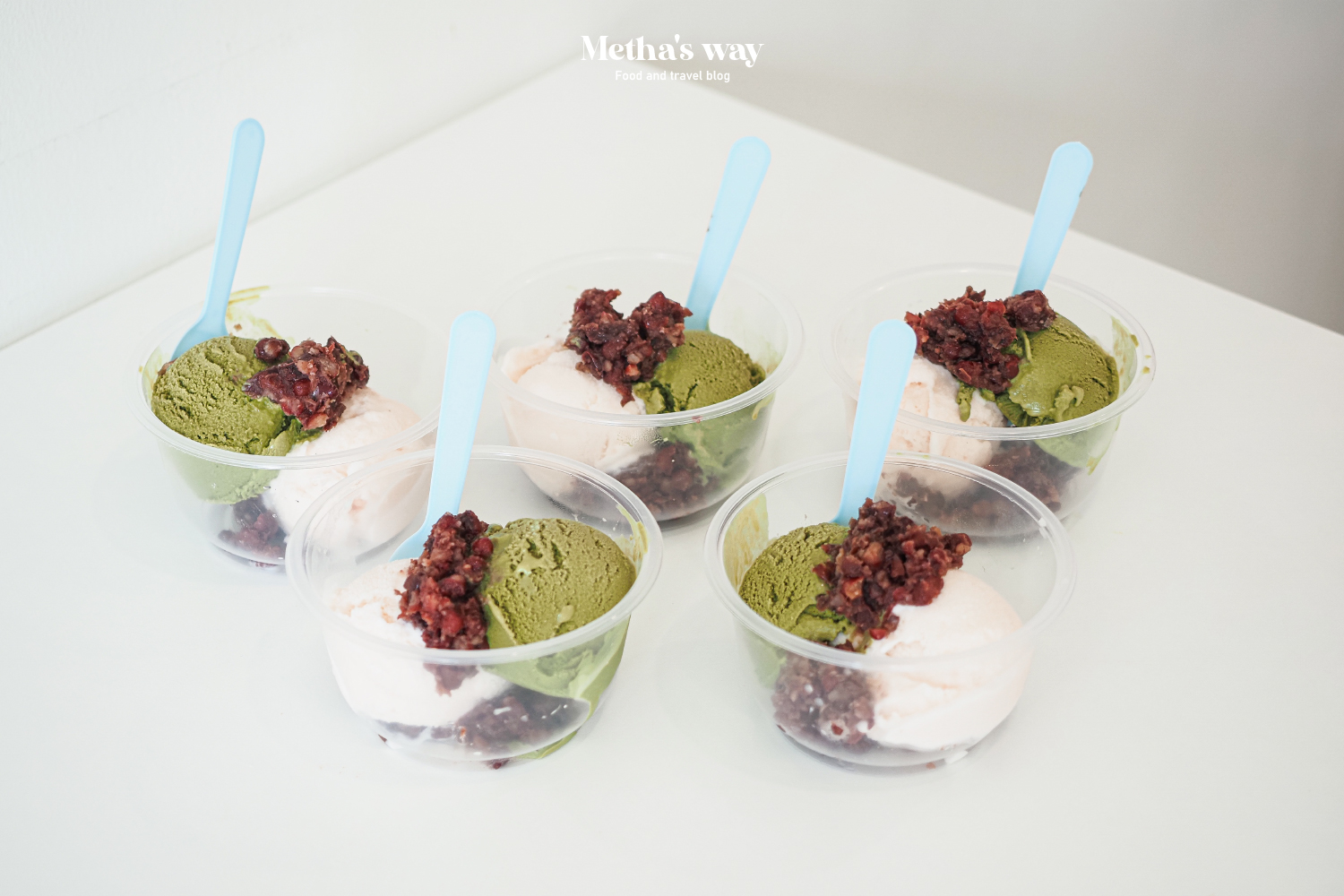 เป็นไอศกรีมมัทฉะกลิ่นหอม รสมัทฉะขมเข้ม ไม่หวาน กินคู่กับไอศกรีมซากุระกลิ่นหอมๆ รสหวานๆ ตัดกับถั่วแดงอีกนิดคือเข้ากันสุด !