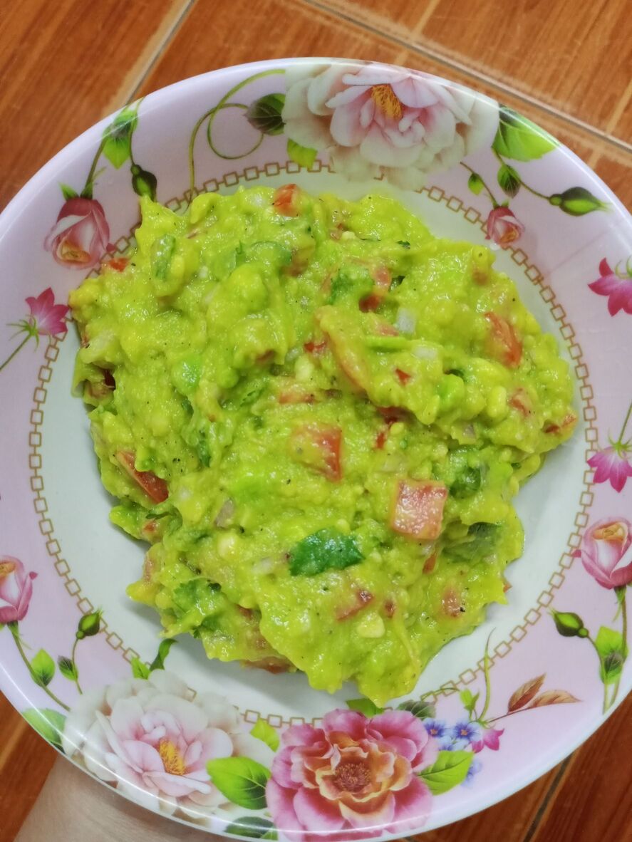 ทำมาจากอาโวคาโดบด ปรุงรสด้วยน้ำเลมอน กระเทียม พริกไทยดำ ผักชี มะเขือเทศสด