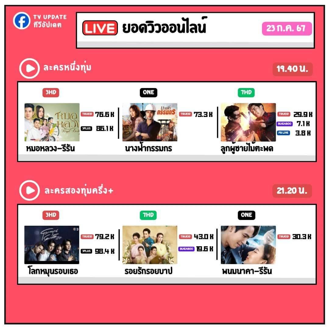 ยอดวิวออนไลน์ 23 ก.ค.2567 โดยทีวีอัปเดต