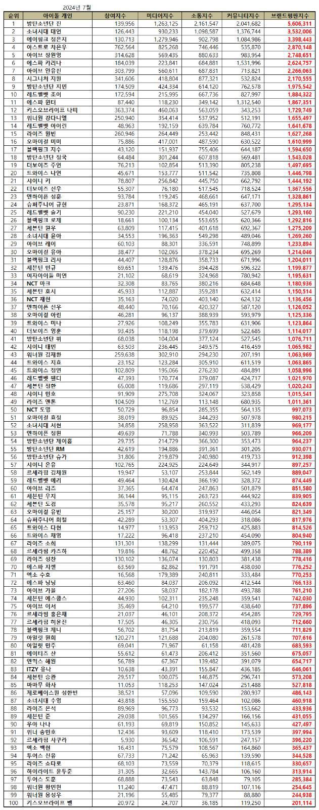 [Top 30]idol individual(รวมช-ญ) brand reputation rankings for July