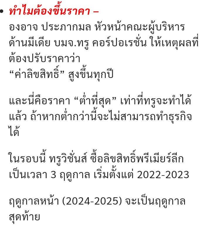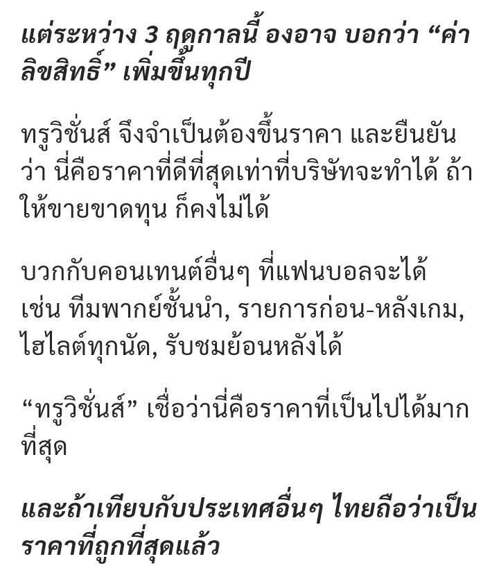 แพคเกจพรีเมียร์ลีก ปีนี้จะขึ้นจาก 2,900 ไปเป็น 5,490