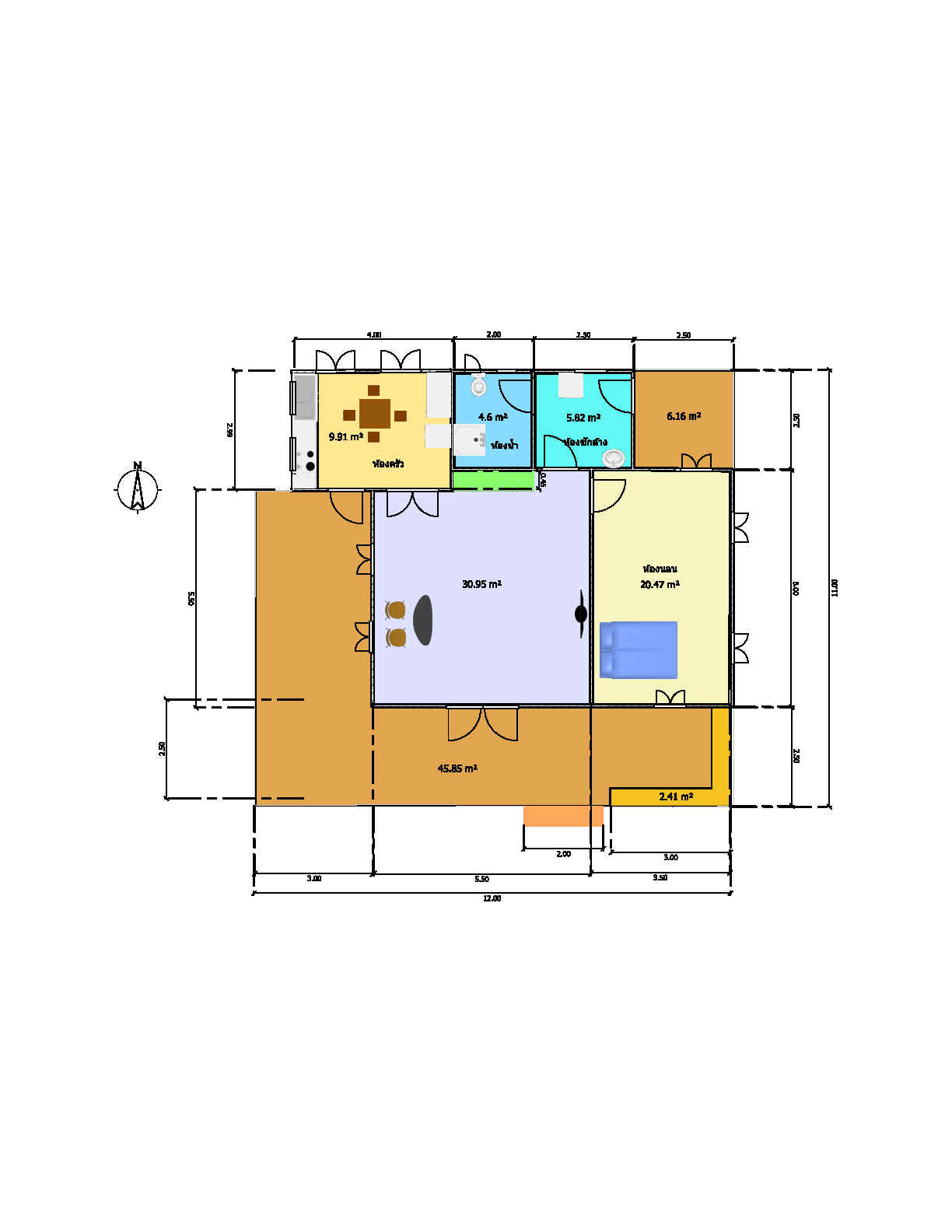 ช่วงเสาห่าง 6 เมตร มุงหลังคาด้วยกระเบื้องลอนคู่