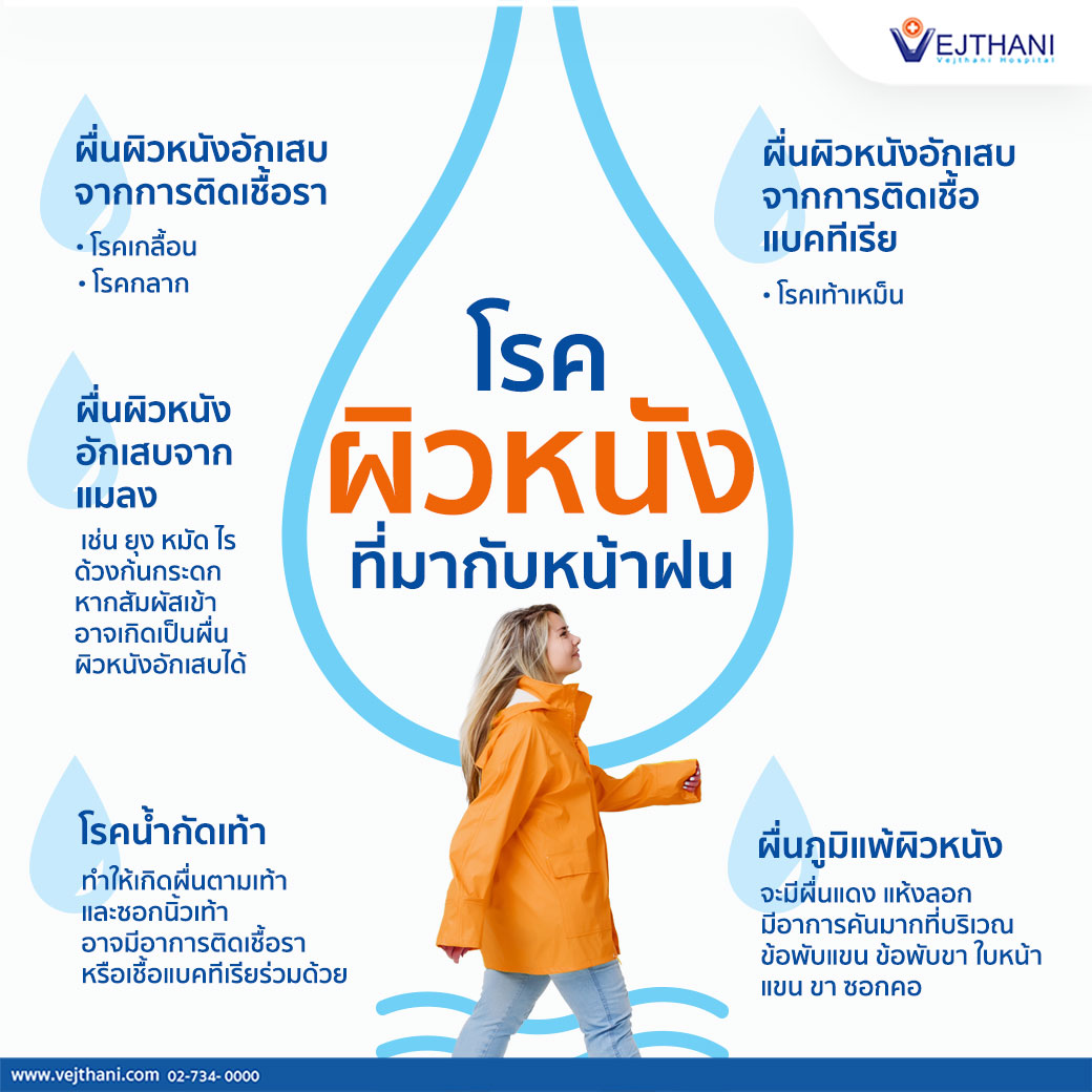 ☔️ ฤดูฝนเป็นช่วงที่มีความชื้นในอากาศสูง ทำให้มีการเจริญเติบโตของเชื้อราและเชื้อแบคทีเรีย ส่งผลให้เกิดโรคผิวหนังตามมาได้ง่ายมาก ๆ เช่น