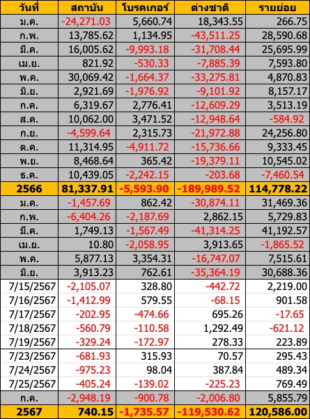 Sinthorn Summary 7/10/2567 : ต่างช่าติขายสุทธิ -1,163.55 ลบ.