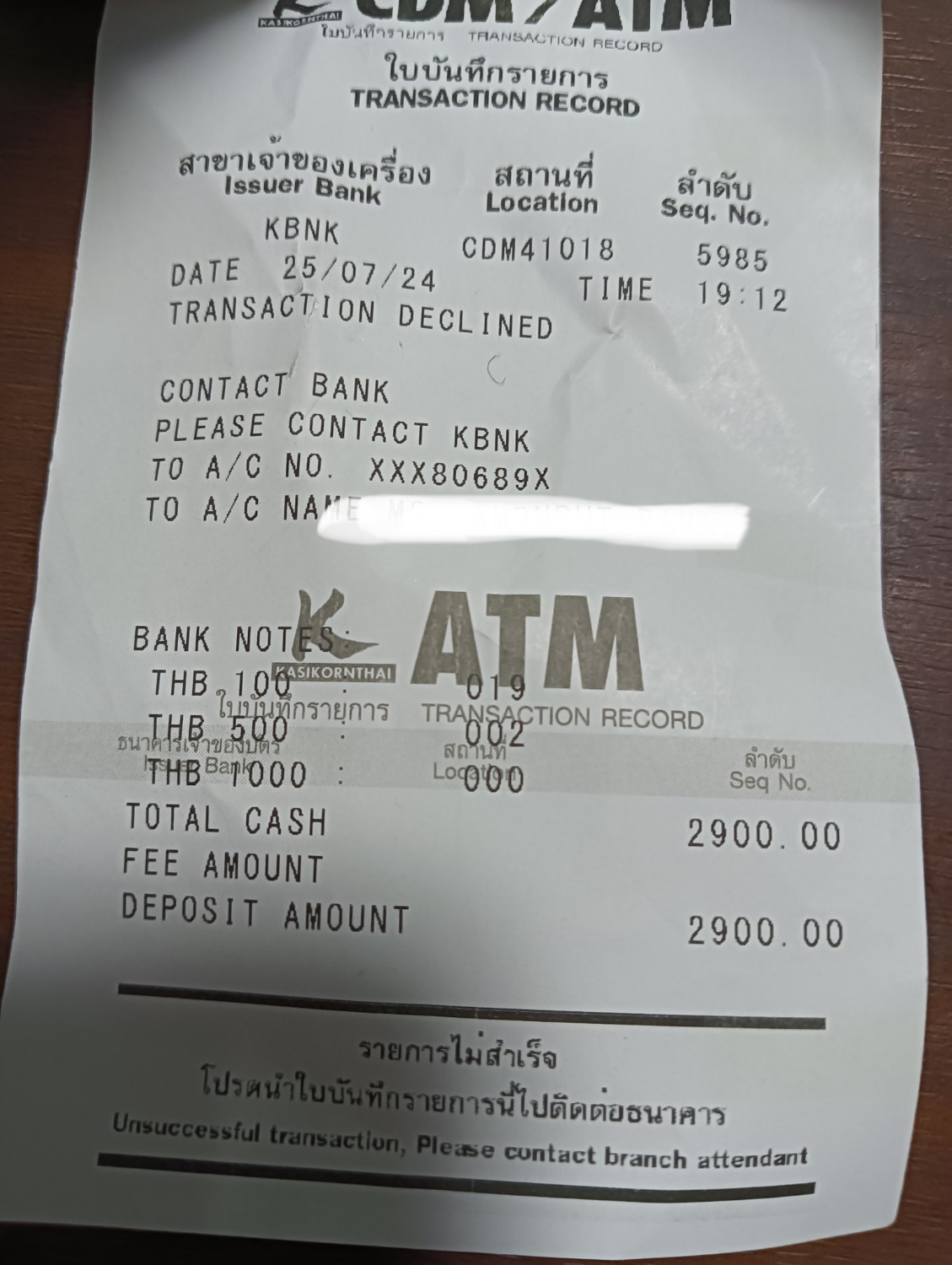 กดเอทีเอมแล้วเงินไม่ออกธนาคารกสิกรแต่ตู้ธนาคารไทยพาณิชย์