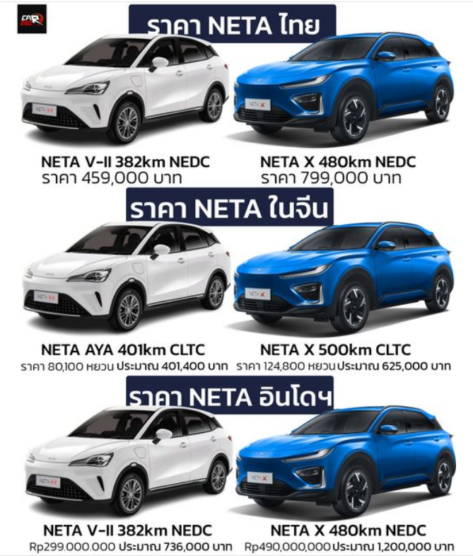 เทียบราคา NETA 3 ประเทศ ไทย จีน อินโด และกำลังการผลิดแบต EV ในไทยยี่ห้อต่างๆ
