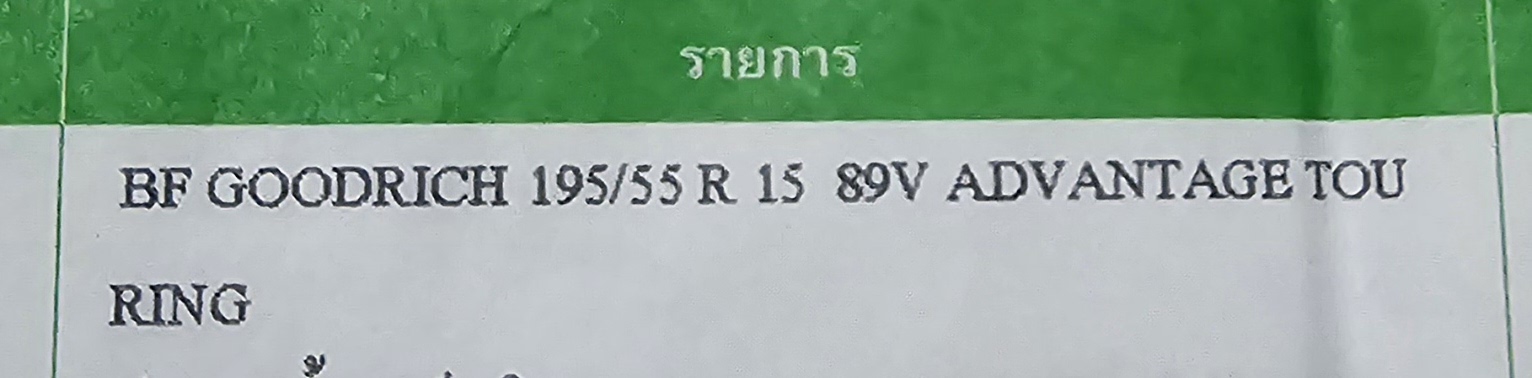 ไปเปลี่ยนยางมา ตอนตกลงกันเป็น BF Goodrich แต่พอถึงบ้านมาดูที่ยางเป็น OTANI ราคาในใบเสร็จคิดเป็น BF Goodrich