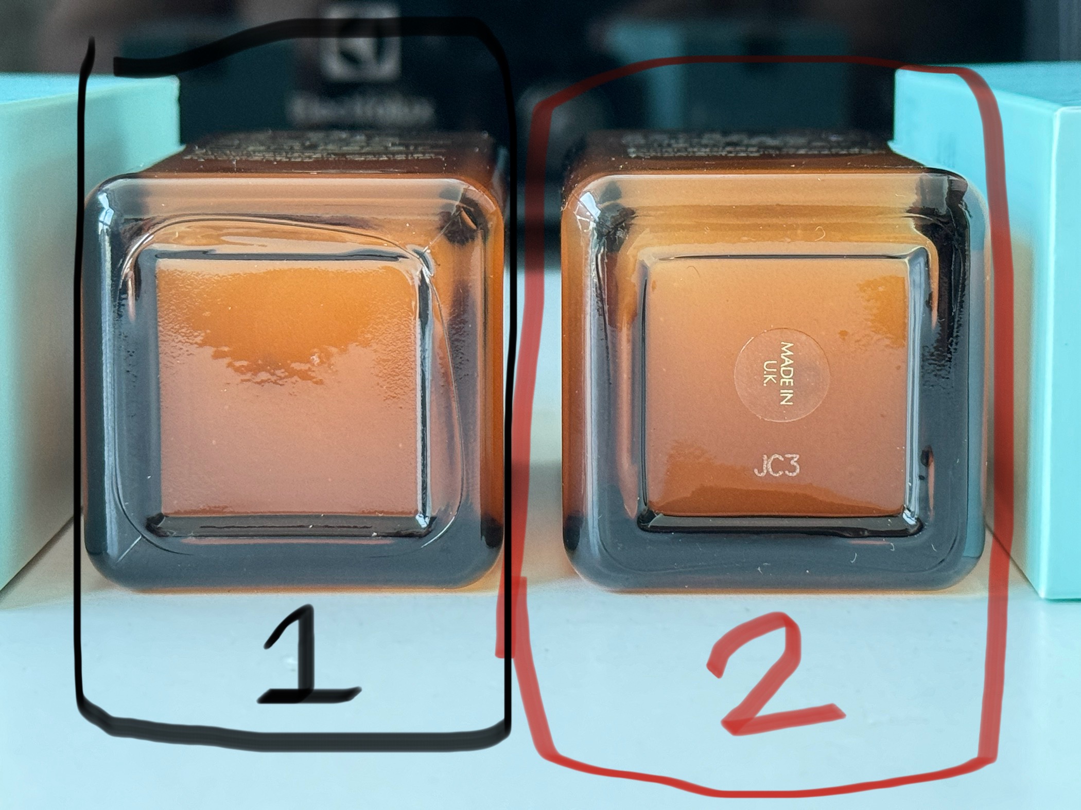 ดูแล้ว 2ขวดไม่เหมือนกัน ไม่รู้ว่าอันไหนแท้ หรือว่าปลอมทั้งคู่ ร้านแจ้งว่ามาจาก duty free เกาหลีทั้ง 2ขวดเลย