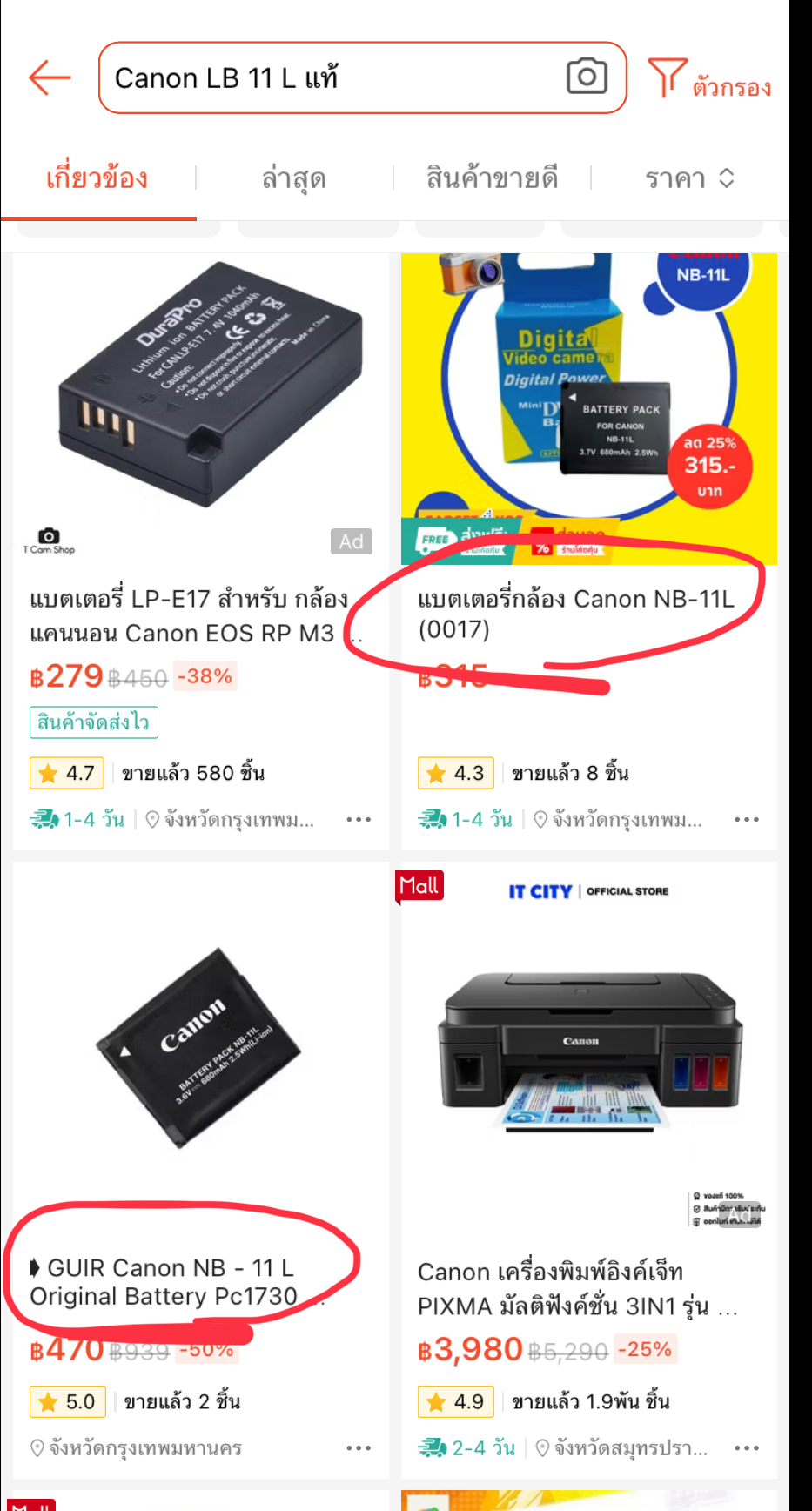 ก็เอาชื่อรุ่นไป search เช่น Canon Powershot A 2400 is battery เดี๋ยวก็เจอครับ