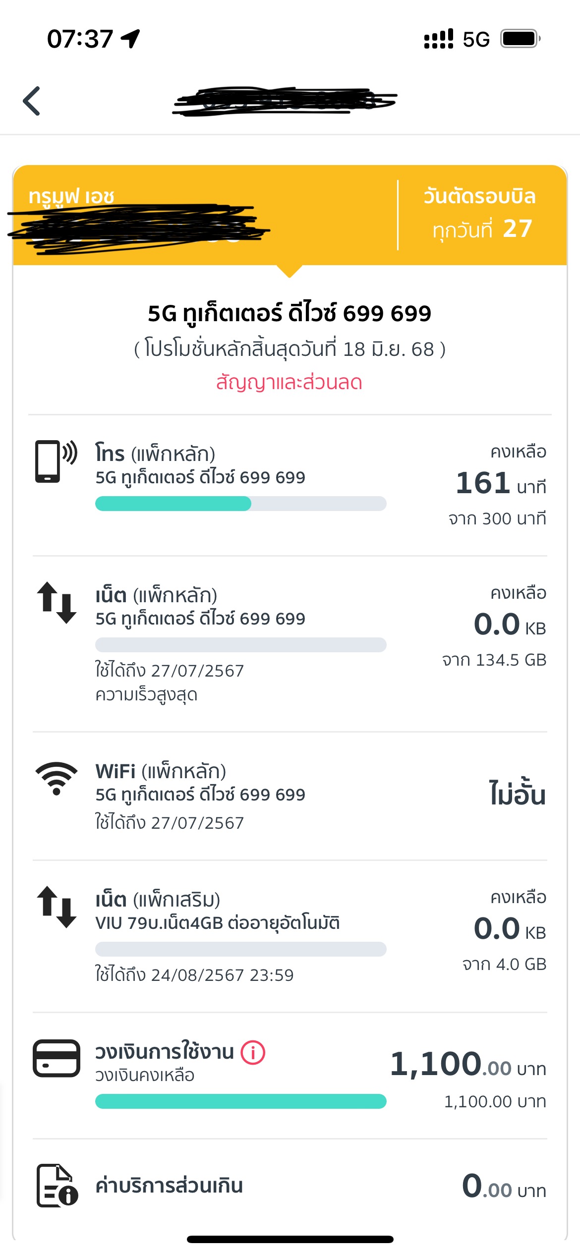 พอดีผมไปเติมเงินโทรศัพท์แล้วลืมว่ามันมีแพ็กเกจหักเงินอัตโนมัติที่ไม่ได้ยกเลิกอยู่ คือตัวนี้ตามในภาพครับ คือมันโดนหักตามสัดส่วน แล้วหลังจากนั้นผมก็มาพิมพ์หาวิธีขอเงินคืนในGoogleเจอวิธีนึงบอกว่าถ้ากดยก