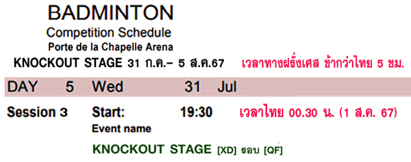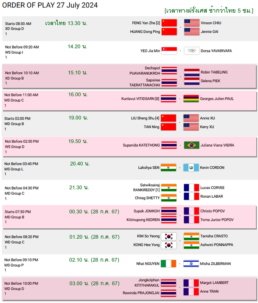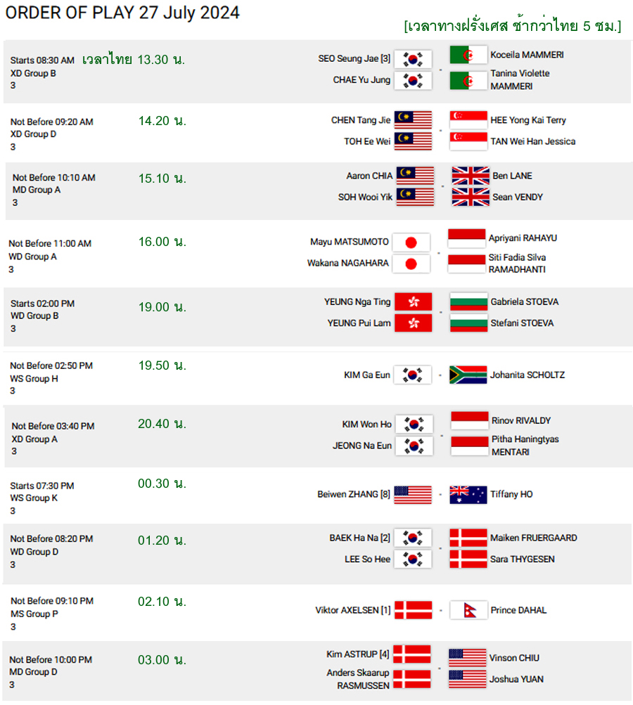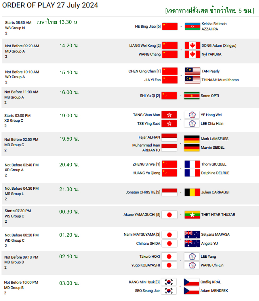 [เว็บโอลิมปิก] คลิกที่แมทช์เพื่อดู live score : https://olympics.com/en/paris-2024/schedule/badminton