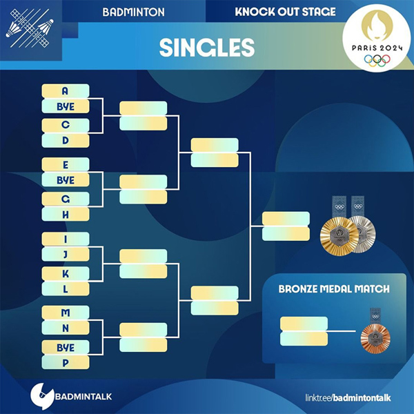 • สายการแข่งขันรอบ Knockout (ประเภทเดี่ยว) (รอบ 16 - รอบชิงชนะเลิศ) (1 - 5 ส.ค. 67)