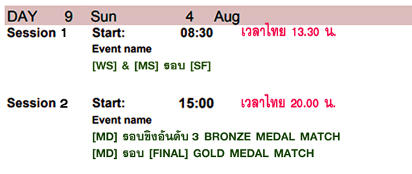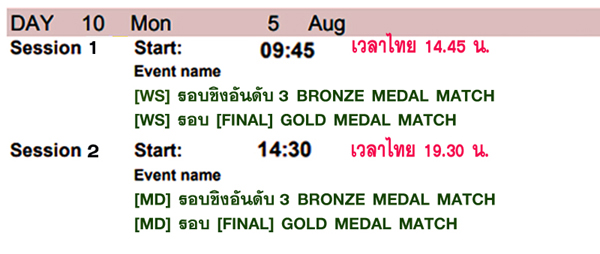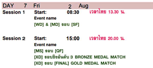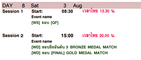 • PPTV 36 ถ่ายทอดสดโอลิมเกมส์ (เฉพาะนักกีฬาไทย) คู่แรกเวลา 19.50 น.