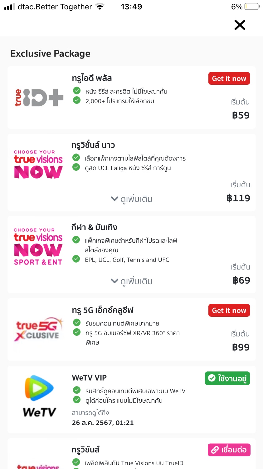 สมัคแพ็กเกจtrueแล้วใช้งานไม่ได้