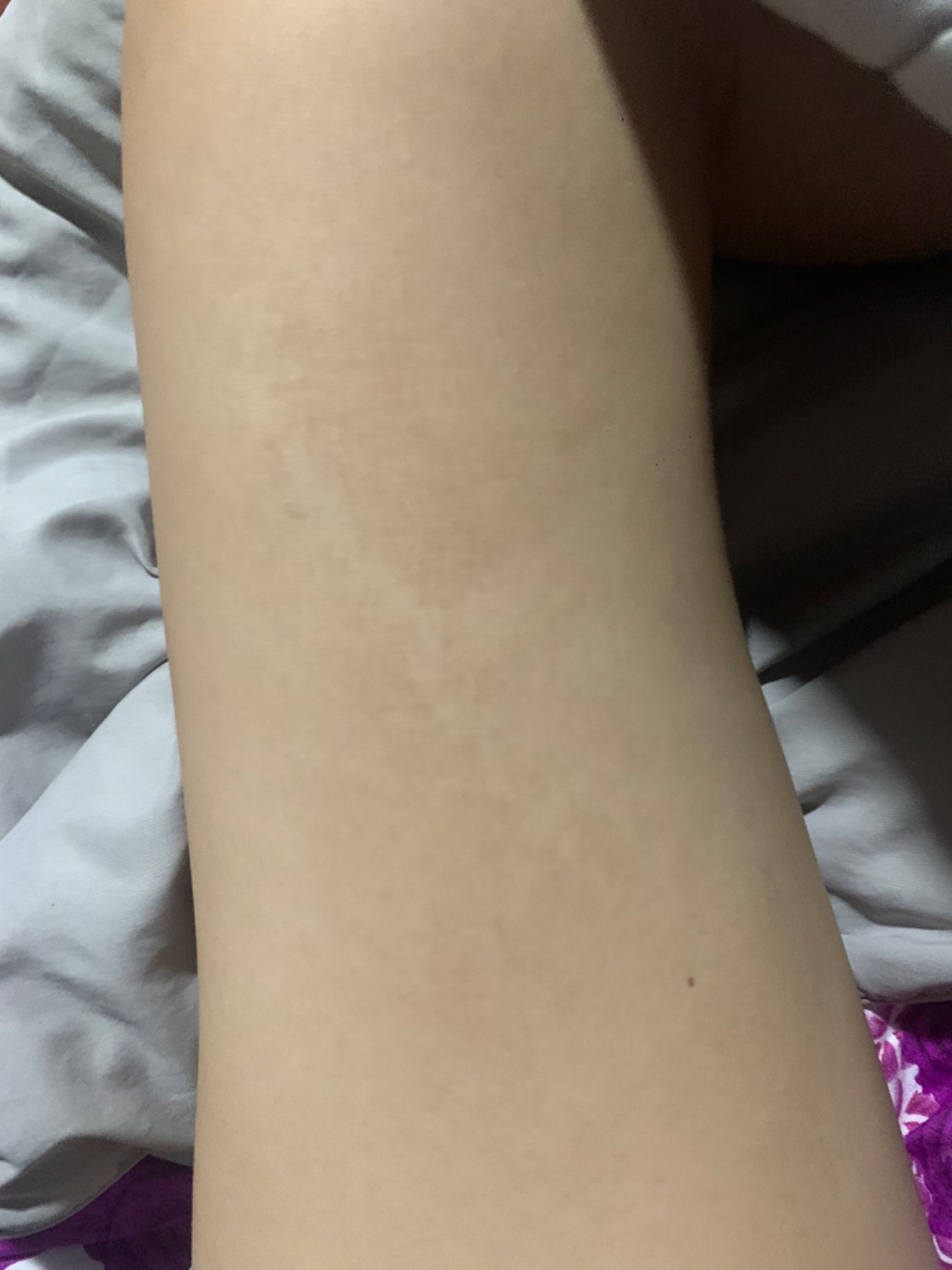 แขนมีรอยขาวๆจุดเล็กๆ ขึ้นบริเวณรูขุมขน ไม่มีตุ่มนูน มันเรียบไปกับผิว เพียงแค่เป็นจุดขาวๆ