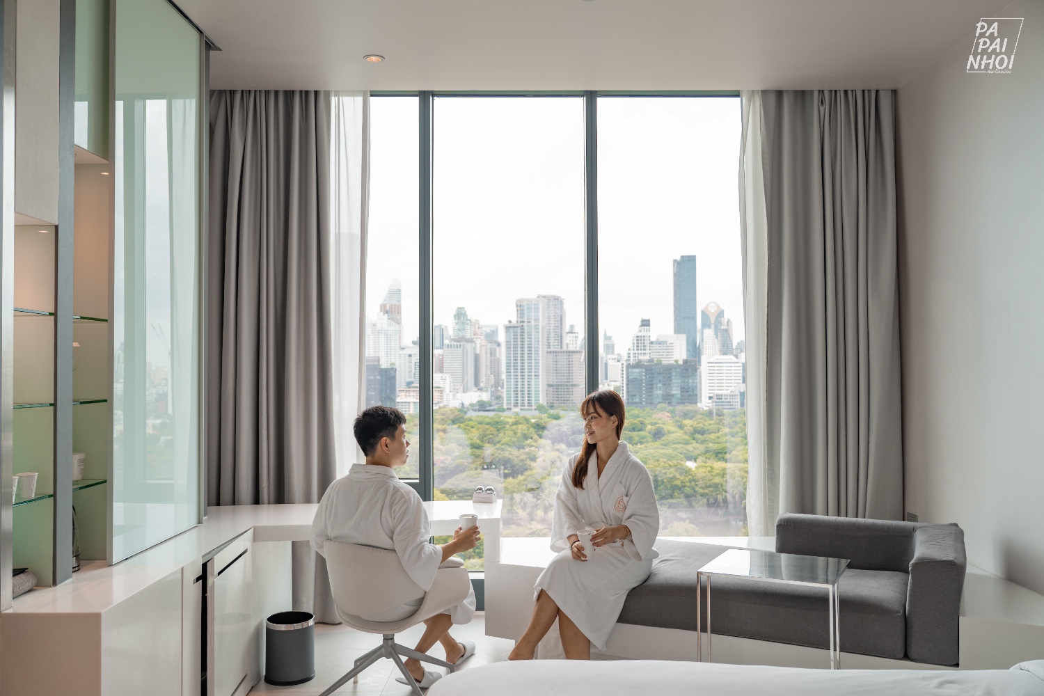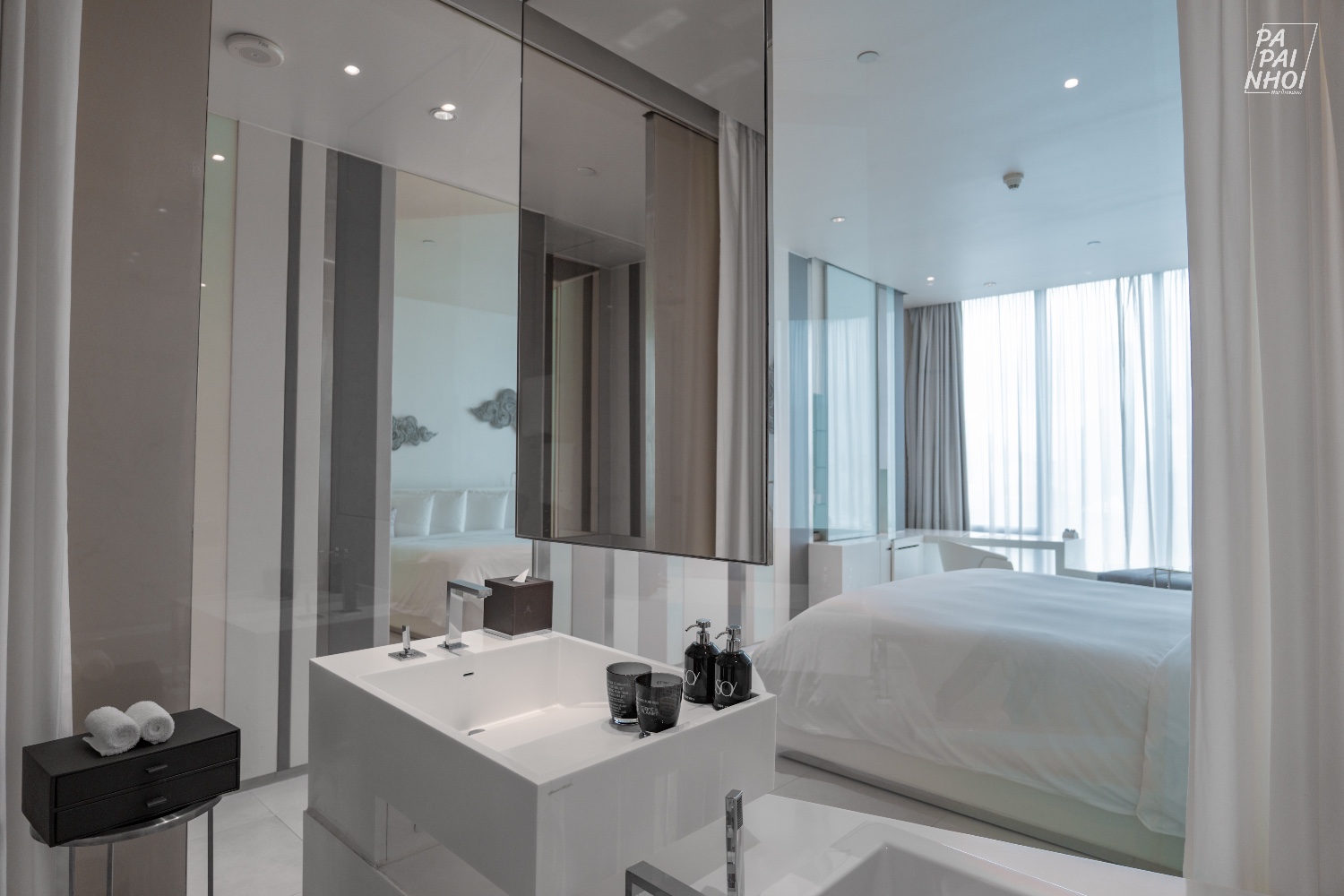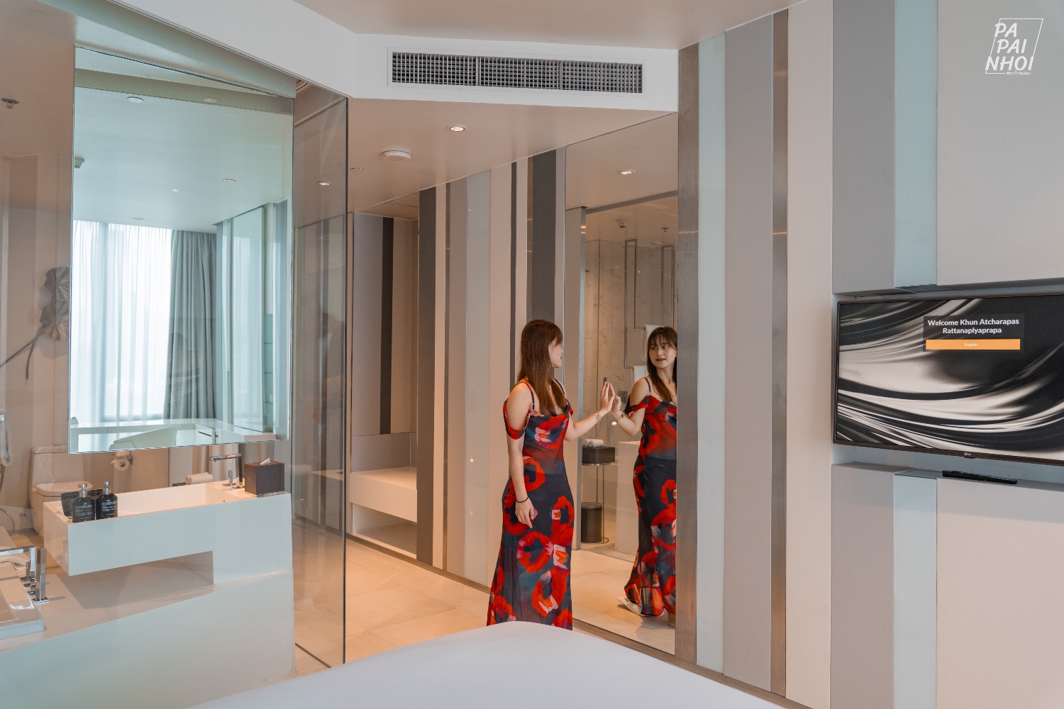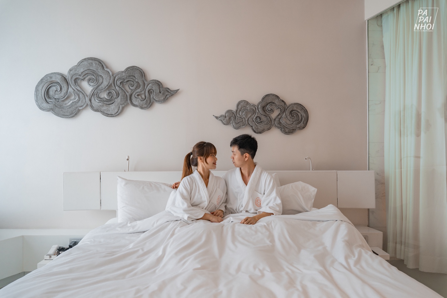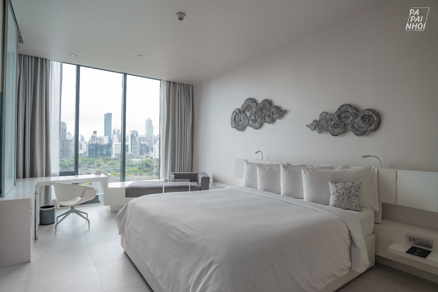 ห้องที่เราเข้าพัก คือ SO Comfy - Matal Element โทนสีขาวสุดมินิมอล ห้องกว้างกว่า 40 ตารางเมตร