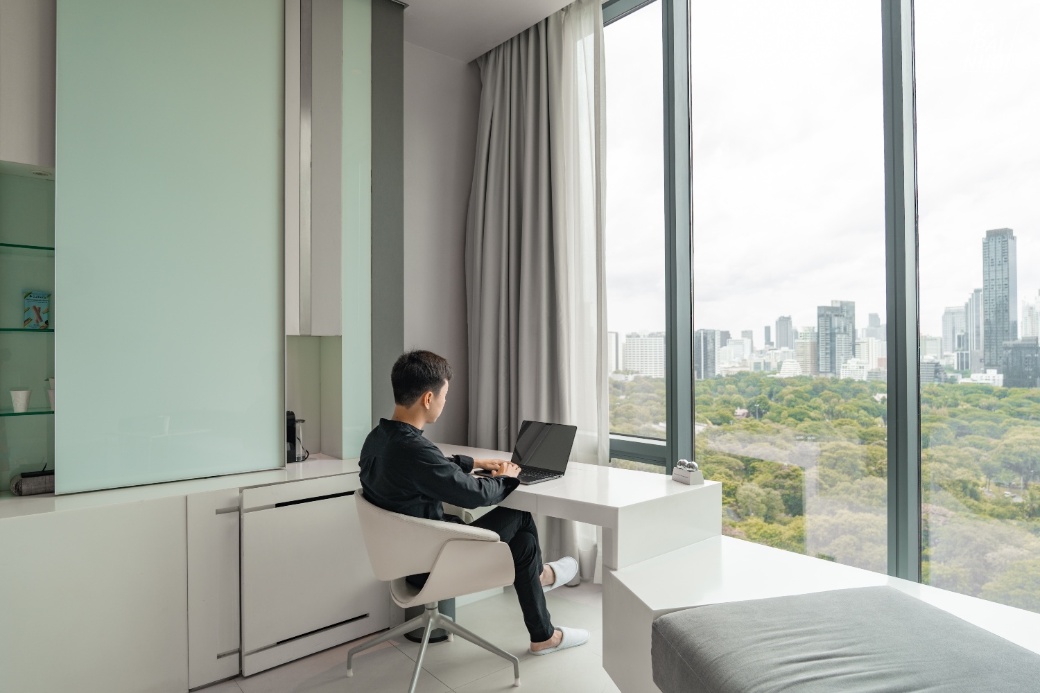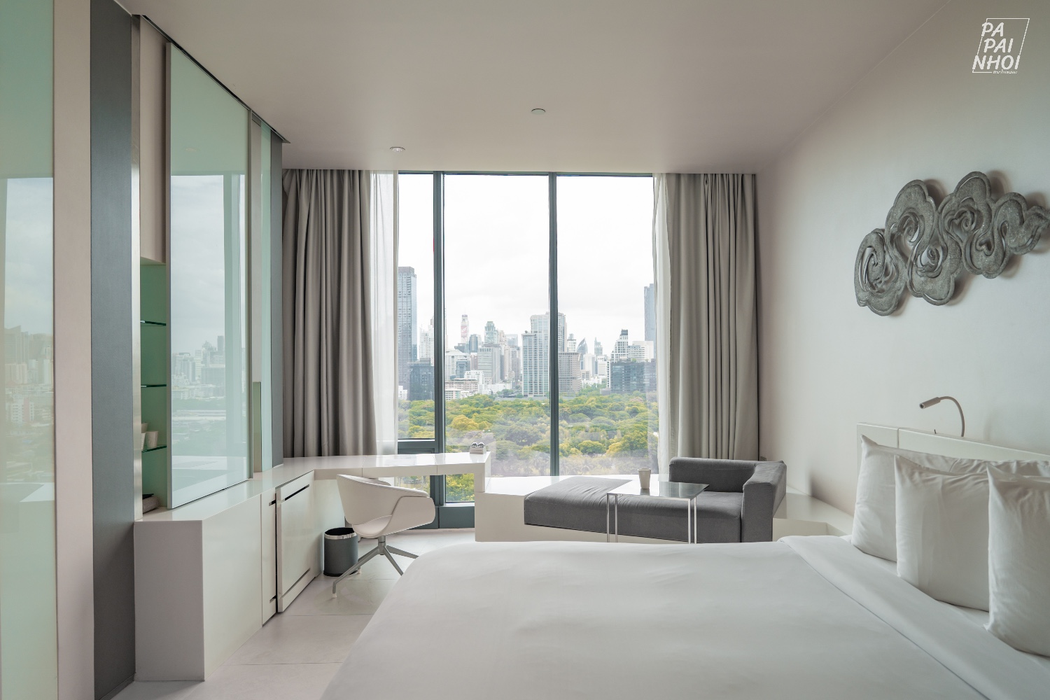 ไฮไลท์คือหน้าต่างที่เป็นกระจกบานใหญ่ มองเห็นวิวสวนลุมพินี ได้พอดิบพอดี
