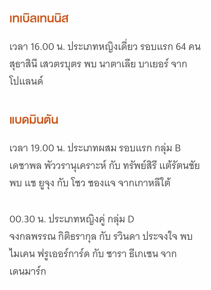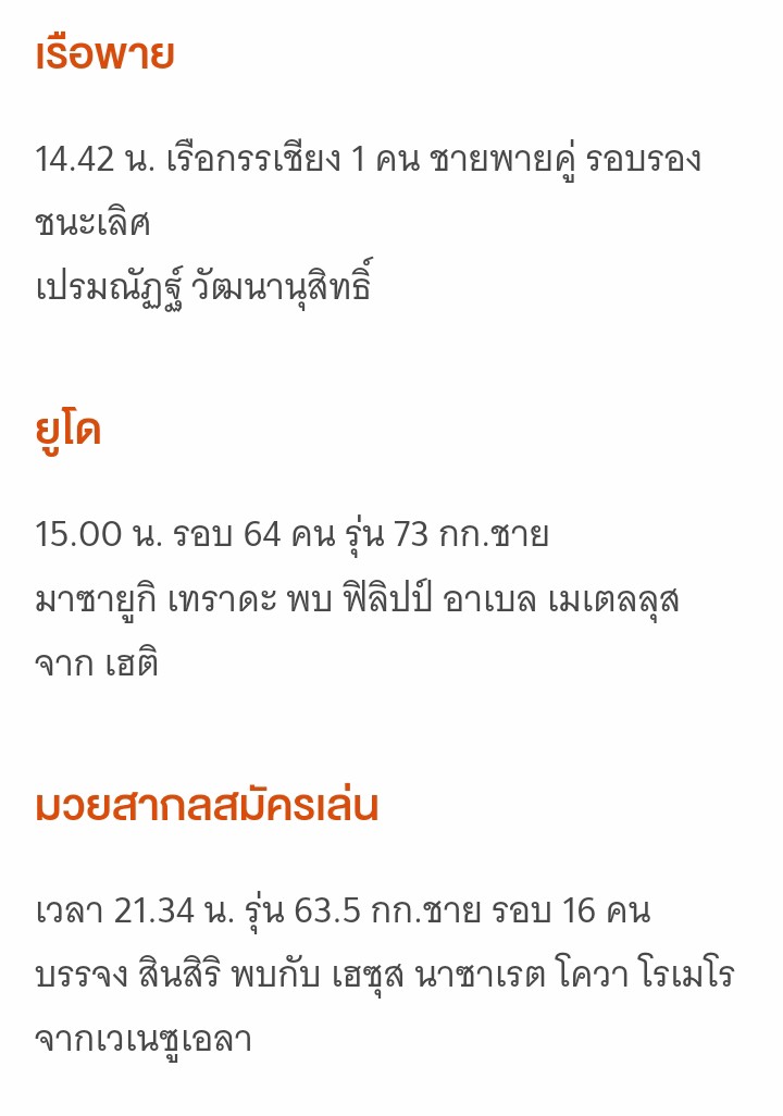 โปรแกรมนักกีฬาไทยในโอลิมปิก DAY 4