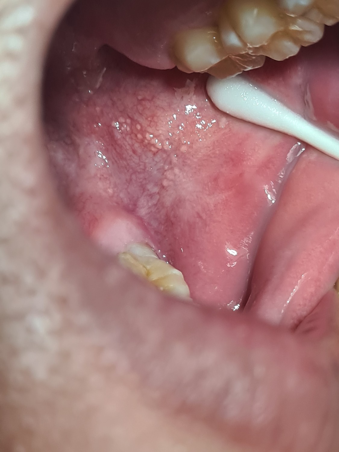คืออยากจะทราบว่ามันจะเกี่ยวกับออรัลเซ็กซ์หรือเปล่าครับ 1.มีตุ่มแดงๆข้างลิ้นไก่ 2.ตุ่มเหลืองข้างลิ้นไก่ 3.ตุ่มขาวๆบริเวณเหงือกตรงกรามด้านใน ตุ่มอันนี้เล็กๆมาก่อนและค่อยๆขยายครับ ไม่รู้สึกเจ็บหรืออะ