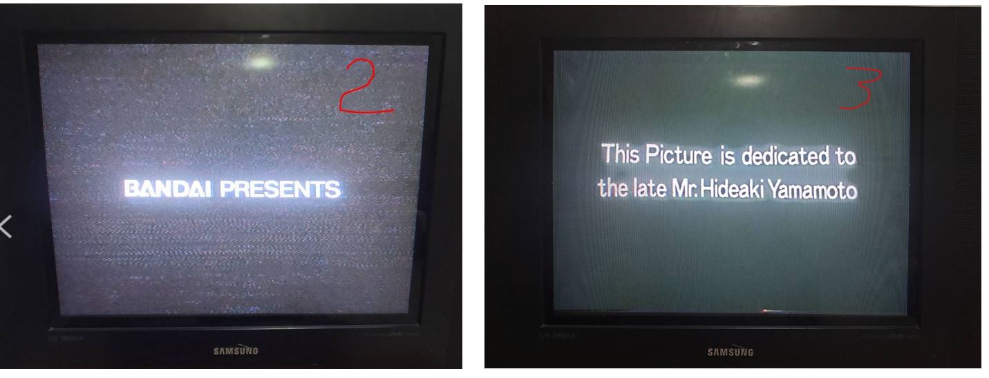 แผ่น laser disc ของ BANDAI กับ ม้วน VHS ระบบ NTSC ของ BANDAI ครับ และ ผมใช้ TV จอแก้ว 21 นิ้วของ SUMSUNG