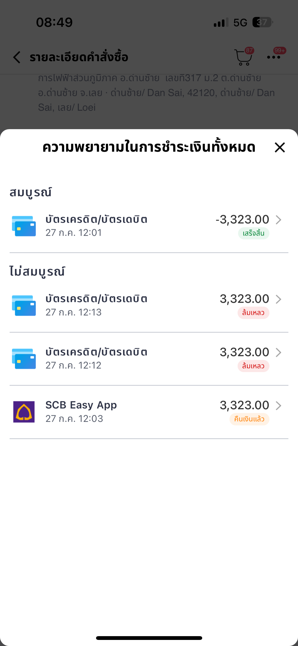 พอรอบที่3 เราชำระผ่านบัตรเครดิตอีกครั้ง ซึ่งรอบนี้ชำระสำเร็จ