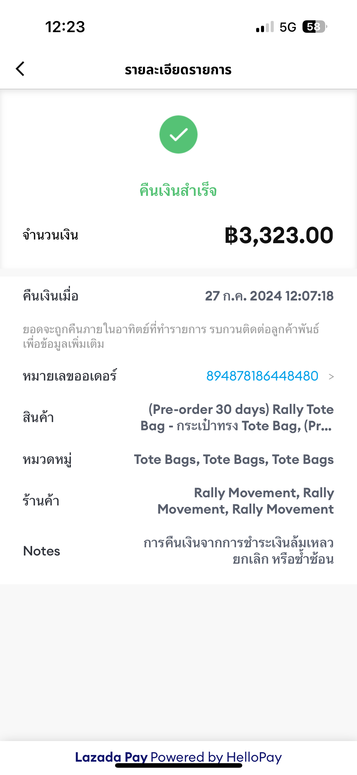 ในระบบ Lazada แจ้งว่าคืนเงินสำเร็จ แต่เงินยังไม่เข้าบัญชี