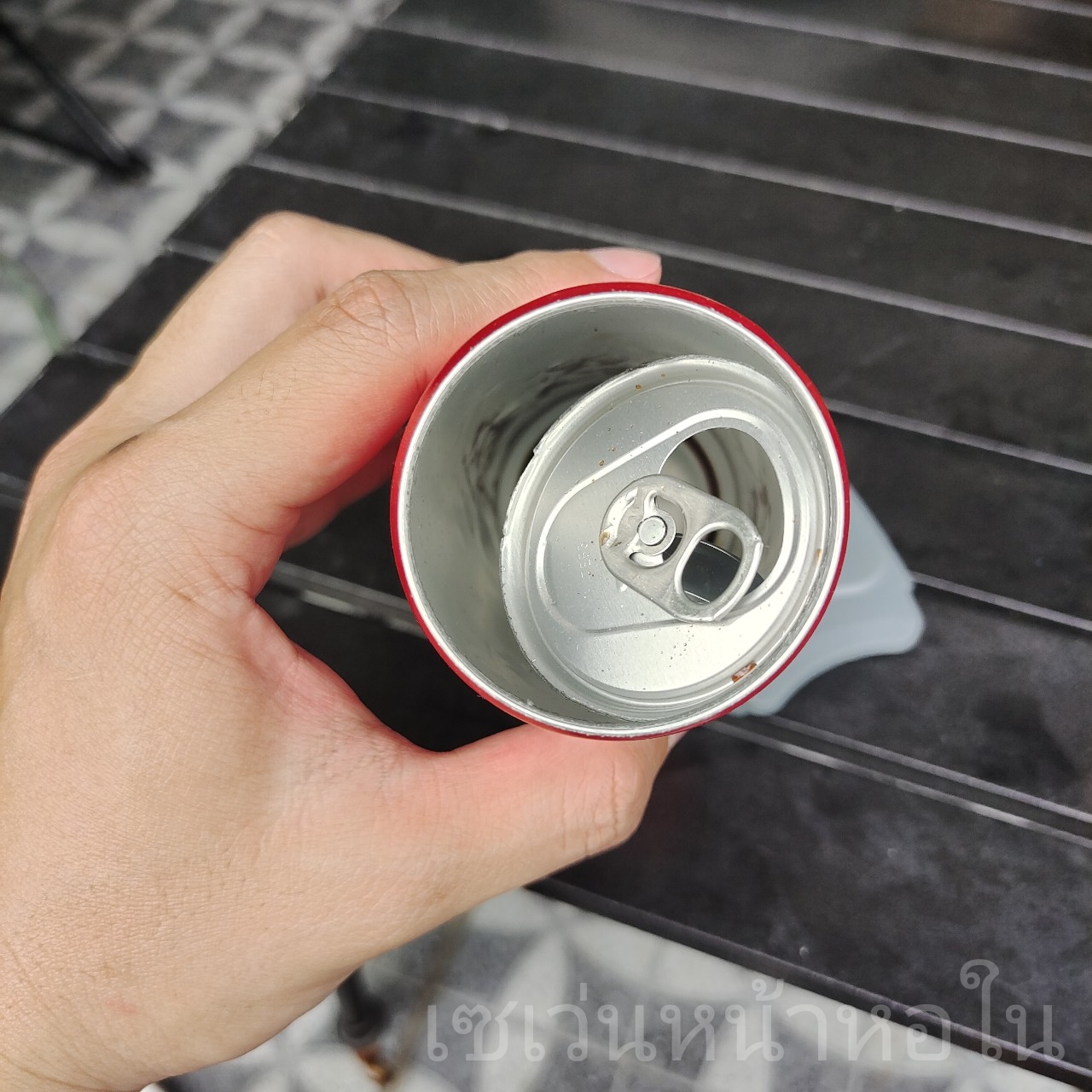 ขั้นตอนนี้ต้องเบาๆมือหน่อย ไม่งั้นกระป๋องโค้กอาจจะบุบ บิดเบี้ยวและไม่สวยครับ