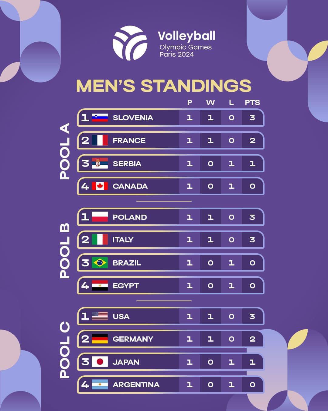 มาดูอันดับทีมชาย ในนัดแรก โอลิมปิก 2024