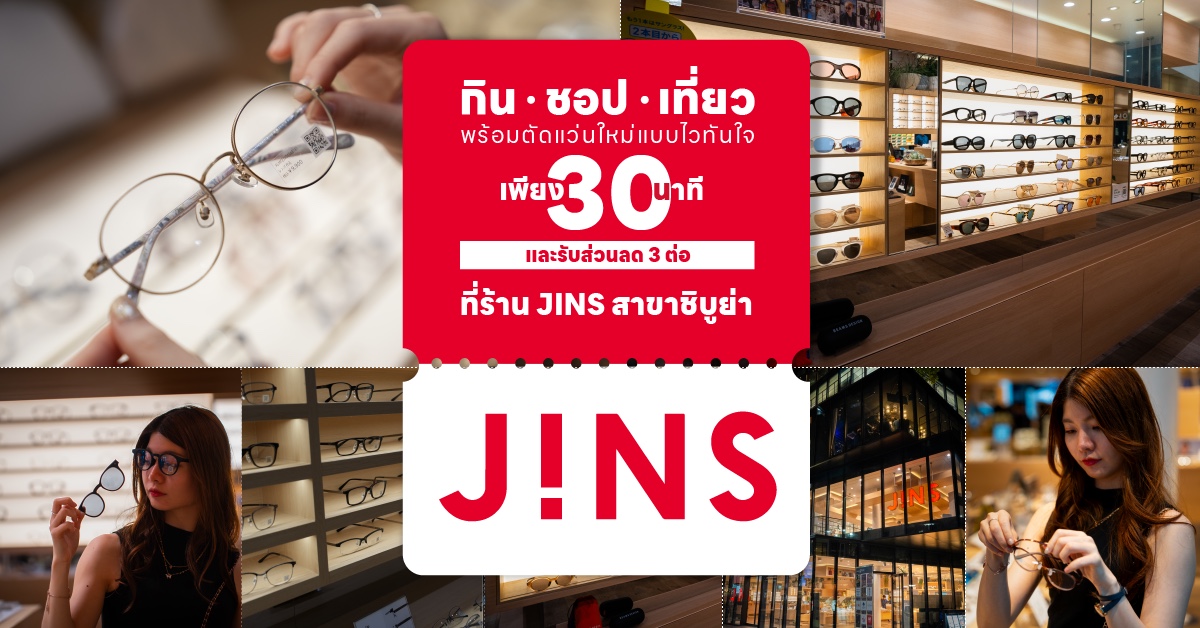 ตัดแว่นแบบไวทันใจเคสเร็วสุดภายใน 30 นาที (หลังขั้นตอนชำระเงิน) พร้อมส่วนลด 3 ต่อกับ JINS สาขาชิบูย่า
