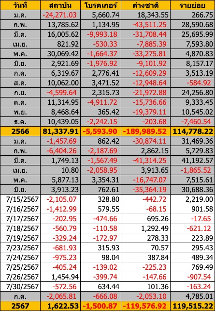 Sinthorn Summary 30/7/2567 : ต่างชาติซื้อสุทธิ 301.04 ลบ.