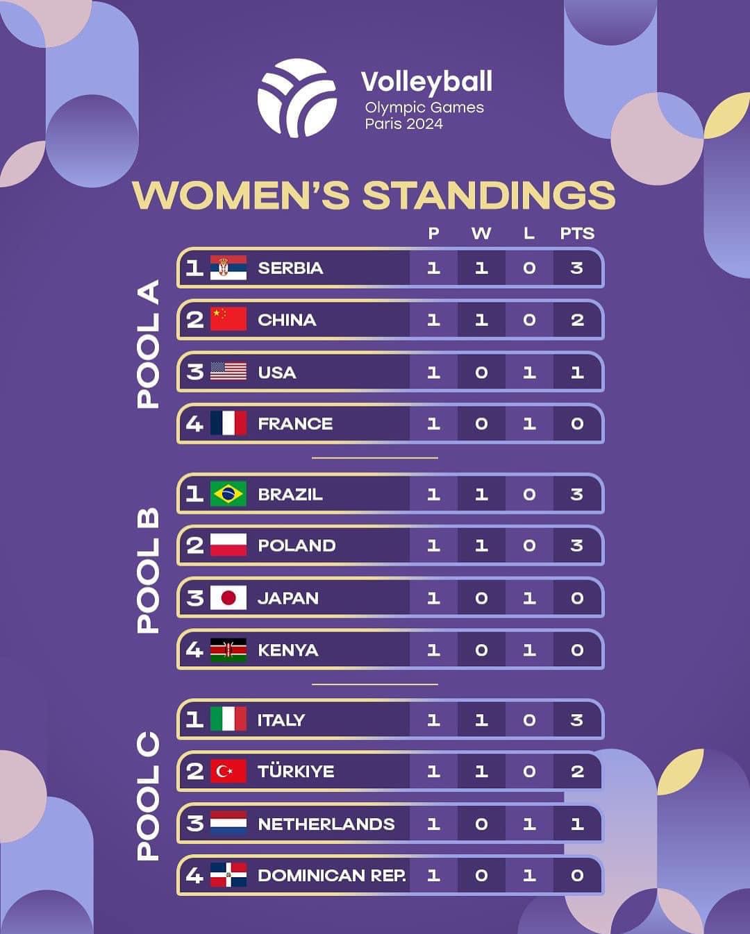 อันดับทีมหญิงในนัดแรก โอลิมปิกปารีส 2024