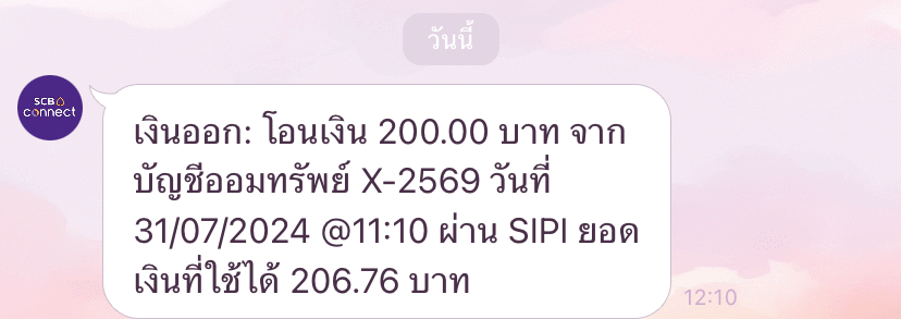 ใช้ SCB มีข้อความแจ้งจาก SCB Commect (Line) วันที่ 29/11/256 เวลา 7.07 น. ว่าโดนหักเงินจาก SIPI ไป 2407 บาท (เจ้าของบัญชีตั้งหักบัญชีอัตโนมัติ ค่าโทรศัพท์รายเดือน Dtac 432 และ ค่าประ