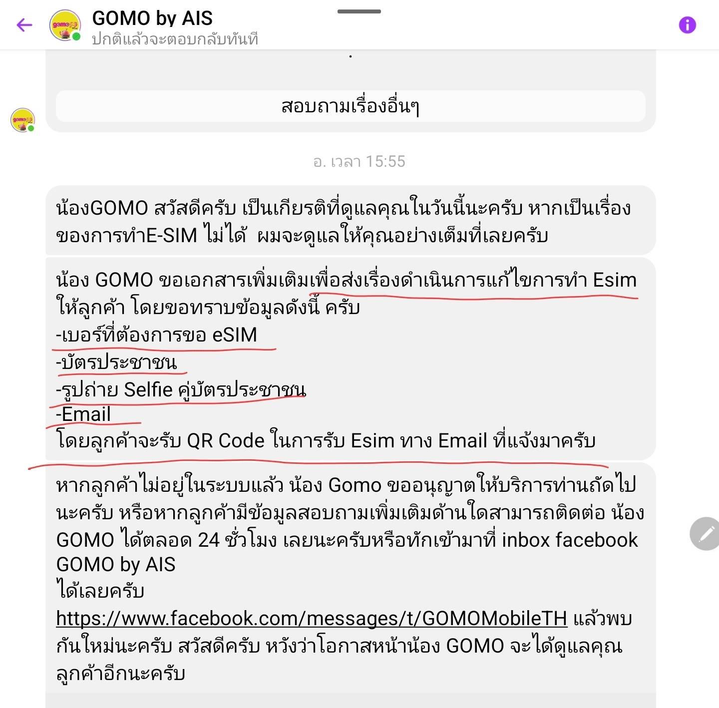 เมื่อวันก่อน gomo ก็ขอเบอร์ บัตรประชาชน พร้อมกับถ่ายรูปตอนถือบัตรประชาชน แล้วจะส่งเป็น qr code มาให้ทางอีเมล์ ผมก็ส่งไปให้แล้วถึง 2 รอบ