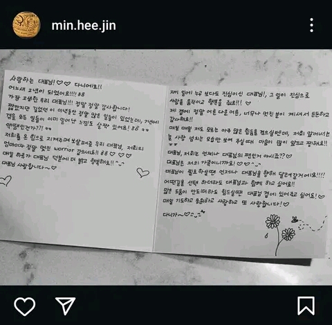 ฉันรู้ว่าคุณต้องผ่านความยากลำบากมากมายที่เราไม่รู้ตัวทุกวัน แต่คุณมักจะแสดงใบหน้าที่เปี่ยมด้วยความรักให้เราเห็นเสมอ ซึ่งมันทำให้หัวใจฉันซาบซึ้งและซาบซึ้งใจอย่างมาก!! ㅠㅠ