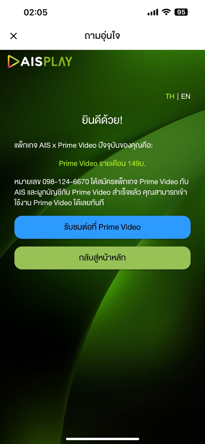 คือผมสมัคร ais play premium plus ไป มันสามาถรดูแอป ต่างๆ พวก hbo iqiyi ซึ่งมี prime video ด้วยคือแอปอื่นได้ลิ้งรับสิทธิ์แล้วยกเว้น prime video เลยจะสอบถามว่าทำอย่างไรได้บ้าง แล้วมี ข้อความส่งมาให้ผมรั