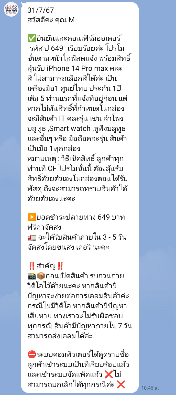 แบบนี้เราสามารถไม่รับของได้มั้ยค่ะเพราะตอนเขาไลฟ์หนาติ๊กต๊อกบอกได้ไอโฟนค่ะ