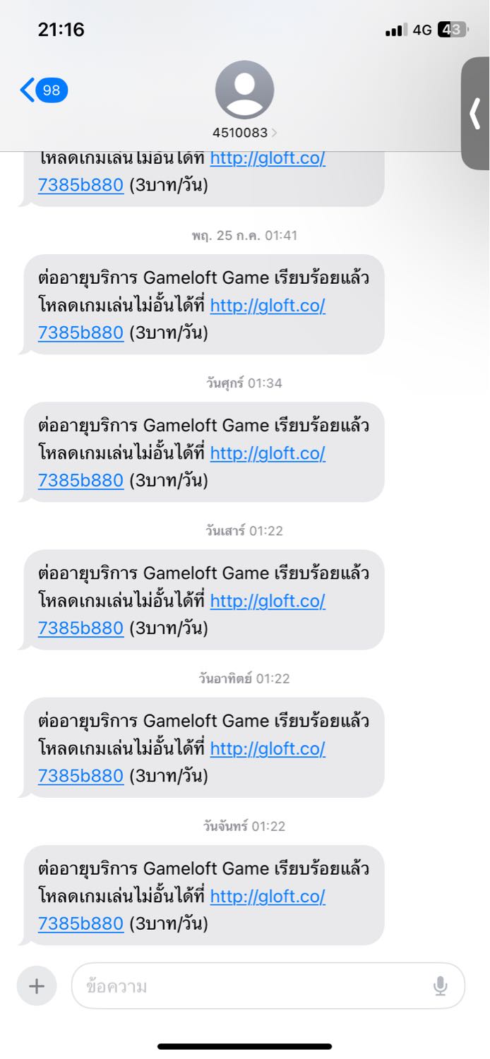 มีใครโดนหักเงินจากข้อความ Gameloft อะไรนี้มั้ยคะ ยกเลิกยังไง???