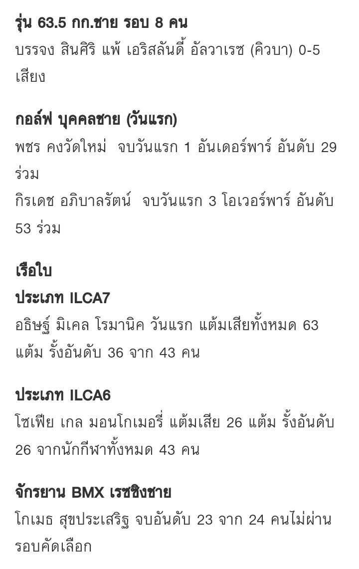 สรุปตารางเหรียญ + ผลงานนักกีฬาไทย Day 6 + โปรแกรม Day 7