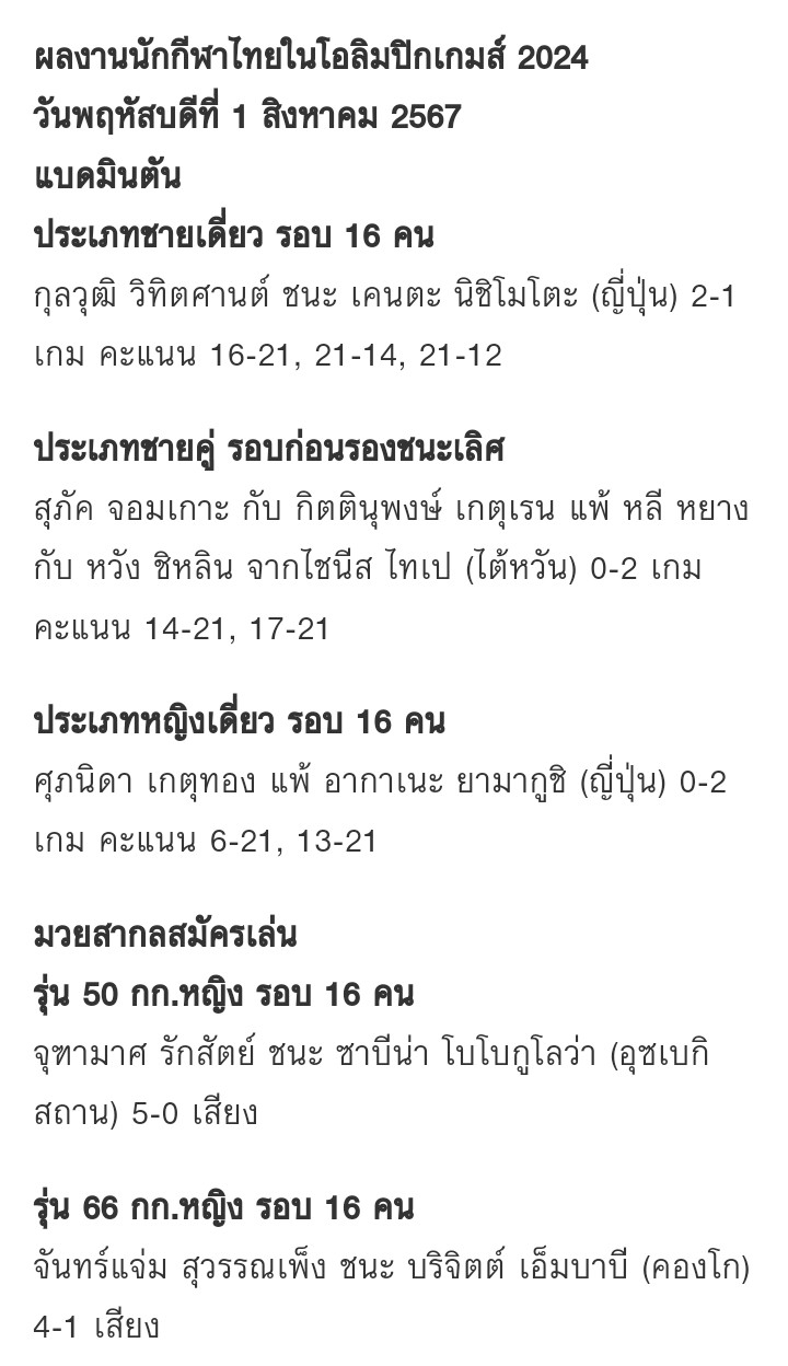 ลุ้นทัพนักกีฬาไทย + สรุปตารางเหรียญโอลิมปิก (วันแรก)