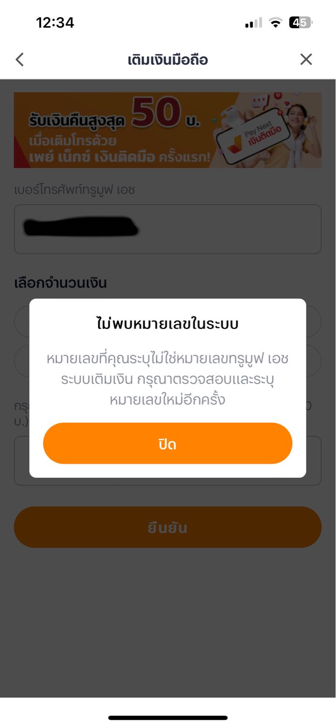 เติมแพ็คเกจทรูมูฟไม่ได้
