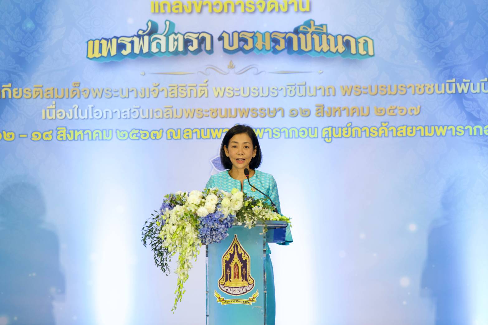 นางสาวสุดาวรรณ หวังศุภกิจโกศล รัฐมนตรีว่าการกระทรวงวัฒนธรรม กล่าวว่า กระทรวงวัฒนธรรม (วธ.) มีนโยบายเทิดทูนสถาบันชาติ ศาสนาและพระมหากษัตริย์และส่งเสริมการสืบสาน รักษาและต่อยอดงานศิลปวัฒนธรรมของชาติ เพื่อน้อมสำนึกในพระมหากรุณาธิคุณของสมเด็จพระนางเจ้าสิริกิติ์ พระบรมราชินีนาถ พระบรมราชชนนีพันปีหลวงที่ทรงปฏิบัติพระราชกรณียกิจนานัปการเพื่อประโยชน์สุขของพสกนิกรชาวไทย ทรงอนุรักษ์ ฟื้นฟูศิลปวัฒนธรรมของชาติ ส่งเสริมงานหัตถศิลป์ และงานหัตถกรรมของไทย รวมถึงทรงอนุรักษ์ ส่งเสริมมรดกภูมิปัญญา “ผ้าไทย” ยกระดับผ้าไทยให้มีความโดดเด่นจนเป็นที่ประจักษ์แก่สายตานานาชาติ ซึ่งวธ.ได้ร่วมกับศูนย์การค้าสยามพารากอนหน่วยงานรัฐ ภาคเอกชนและภาคีเครือข่ายทางวัฒนธรรม จัดงานเฉลิมพระเกียรติสมเด็จพระนางเจ้าสิริกิติ์ พระบรมราชินีนาถ พระบรมราชชนนีพันปีหลวง เนื่องในโอกาสวันเฉลิมพระชนมพรรษา 12 สิงหาคม 2567 ในชื่องาน “แพรพัสตรา บรมราชินีนาถ” ระหว่างวันที่ 12 - 18 สิงหาคม 2567 เวลา 11.00 – 20.30 น. โดยจะมีพิธีเปิดงานและพิธีถวายราชสักการะสมเด็จพระนางเจ้าสิริกิติ์ พระบรมราชินีนาถ พระบรมราชินีพันปีหลวง ในวันที่ 12 สิงหาคม 2567 เวลา 11.30 น. ณ ลานพาร์ค พารากอน ชั้นเอ็ม ศูนย์การค้าสยามพารากอน กรุงเทพฯ