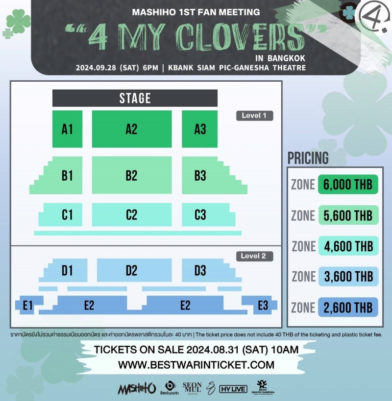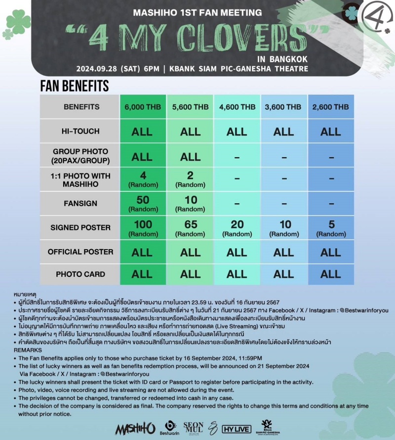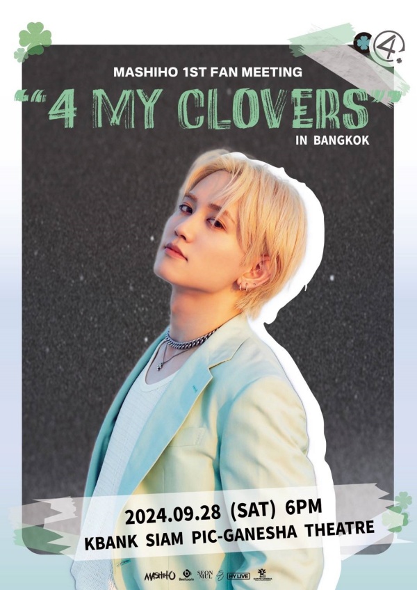 "MASHIHO PRESENTS 1st FAN MEETING 4 MY CLOVERS IN BANGKOK 2024" วันเสาร์ที่ 28 กันยายน 2567 ณ โรงละครเคแบงก์สยามพิฆเนศ เตรียมปักหมุดรอได้เลย