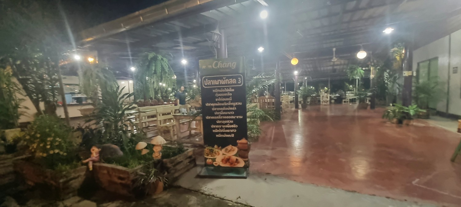ร้านนี้ อยู่ไม่ไกลจากที่พัก ต้องขับรถไป สะดวกสุด ร้านติดริม ริมเขื่อนยาง ริมแม่น้ำวัง แต่บรรยากาศค่ำแล้ว ผมกับพวก เลยสั่งไปทานที่รีสอร์ท เน้นเป็นกับแกล้ม ทุลักทุเลดีจัง ✌🤤😋😁😅