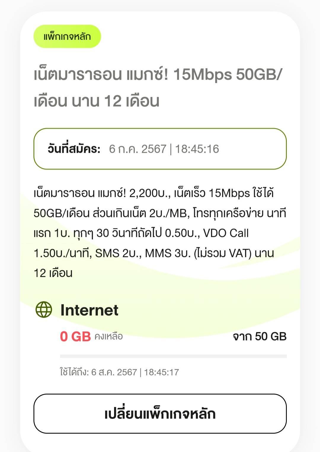 เราใช้เน็ต Marathon max รายปี 15mbps/50GB ต่อต่อ นาน12เดือน