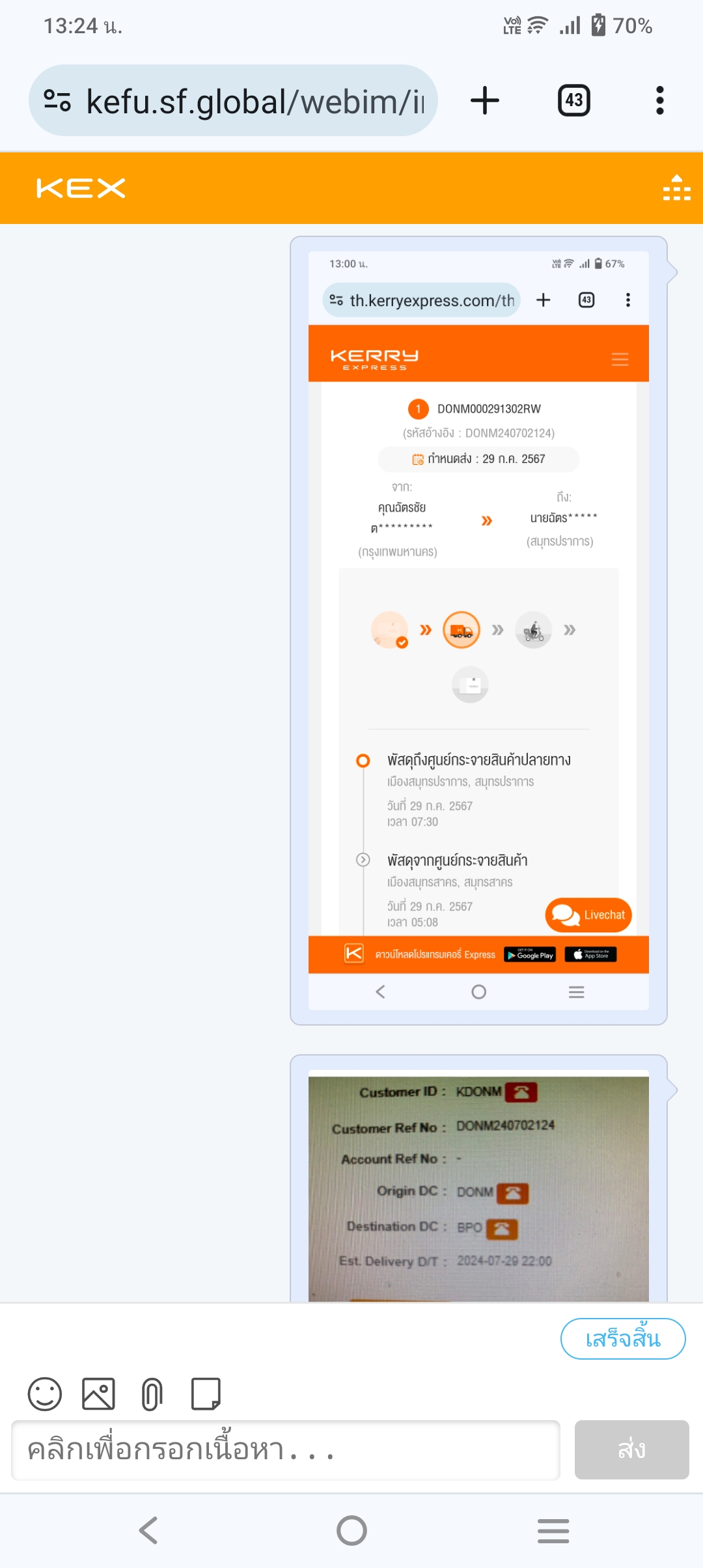 สถานะพัสดุในKEX ไม่เคลื่อนไหว ปกติต้องกำหนดส่งแล้ว มีใคเป็นไหมคะ